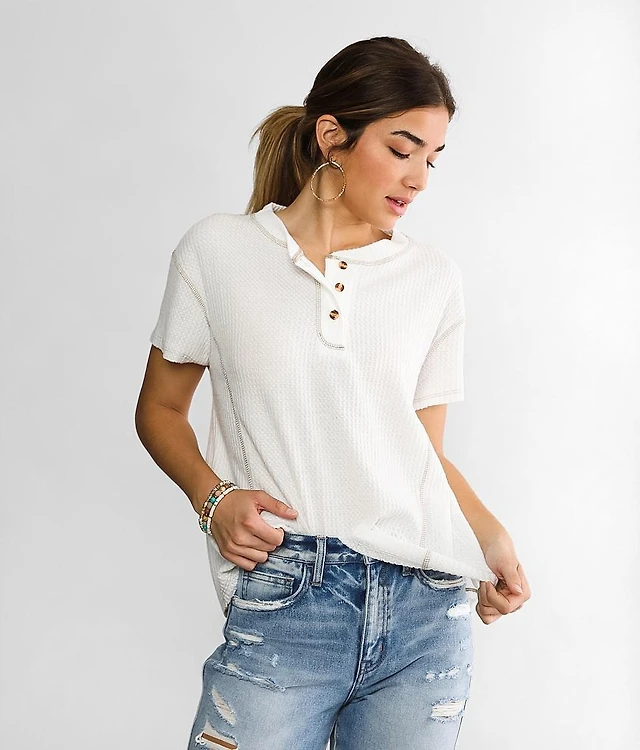 Cleo + Wolf Women's Ashton Mixed Media Short Sleeve Thermal Shirt