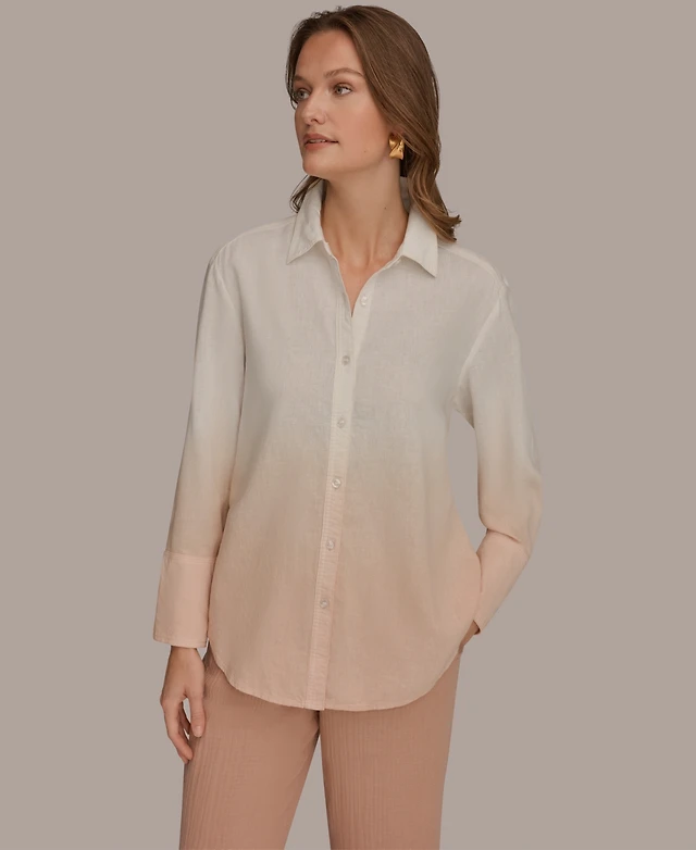 Anne Klein Women's Striped Drop-Shoulder Button Up Shirt