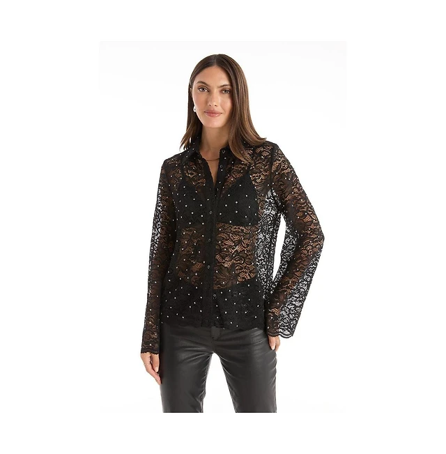 The Noli Shop Womens Jena Lace Button Up Shirt - Black