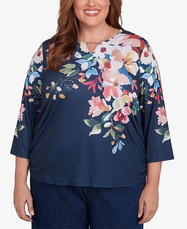 Alfred Dunner Plus Saratoga Springs Textured Panel Spliced Knit Top
