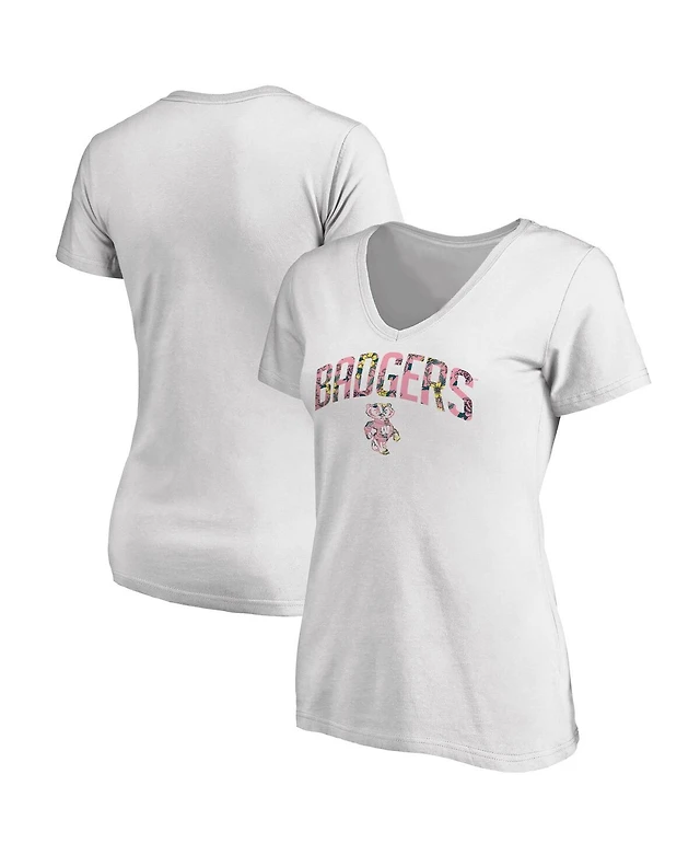 Fanatics Mto Label Women's White Wisconsin Badgers Floral Arched V-Neck T-Shirt