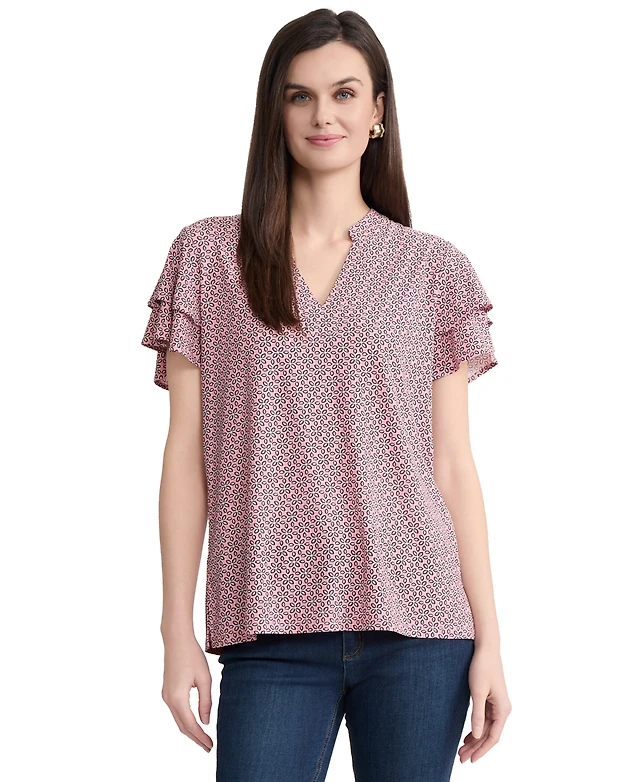 Ann Taylor Embroidered Ruffle Collar Shirt Women's