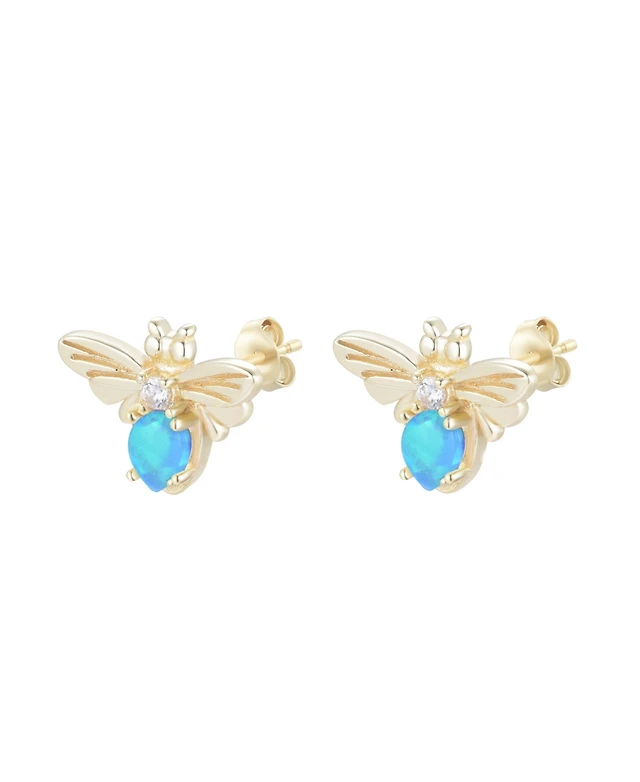 Kamaria Round Stud Earrings With Lab-Grown Opal 14k Gold Plated Sterling Silver