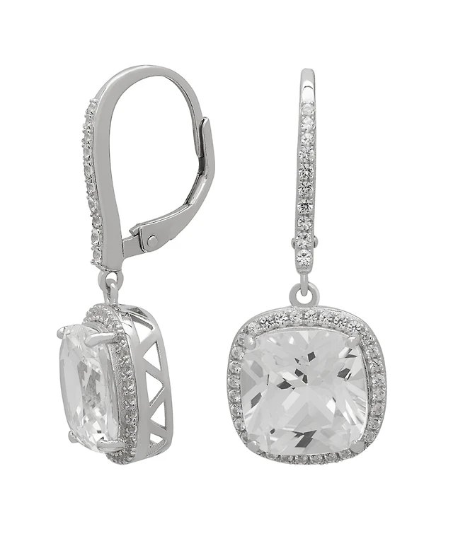 Macy's Lab-Grown White Sapphire Cushion Drop Earrings (8-7/8 ct. t.w.) in Sterling Silver