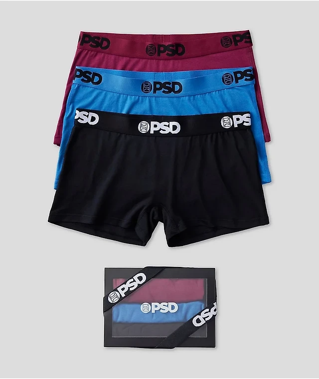 PSD Tones 3 Pack Black, Red and Blue Boyshort Underwear