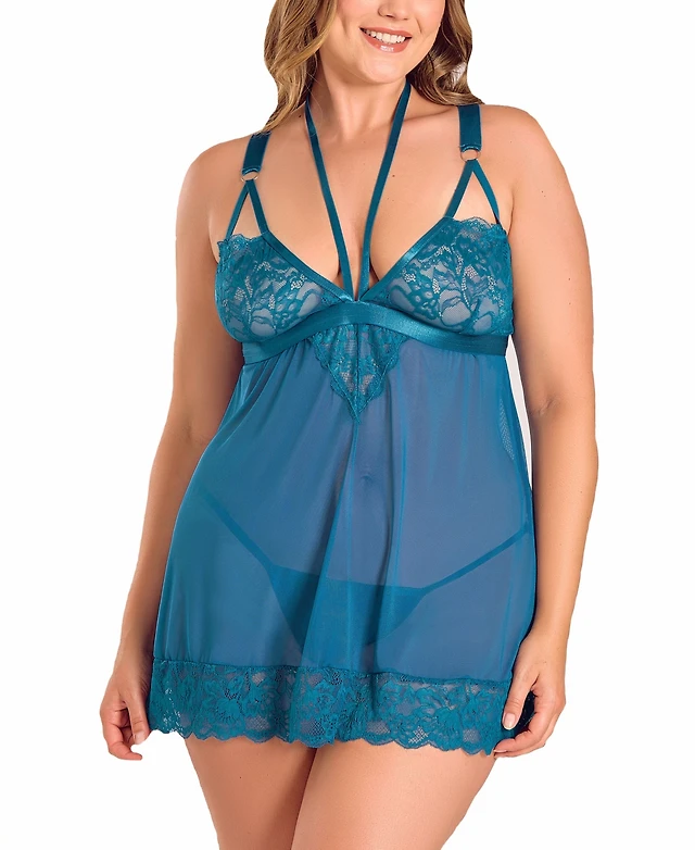 iCollection Plus Halter Lace Bodysuit with Open Back Lingerie