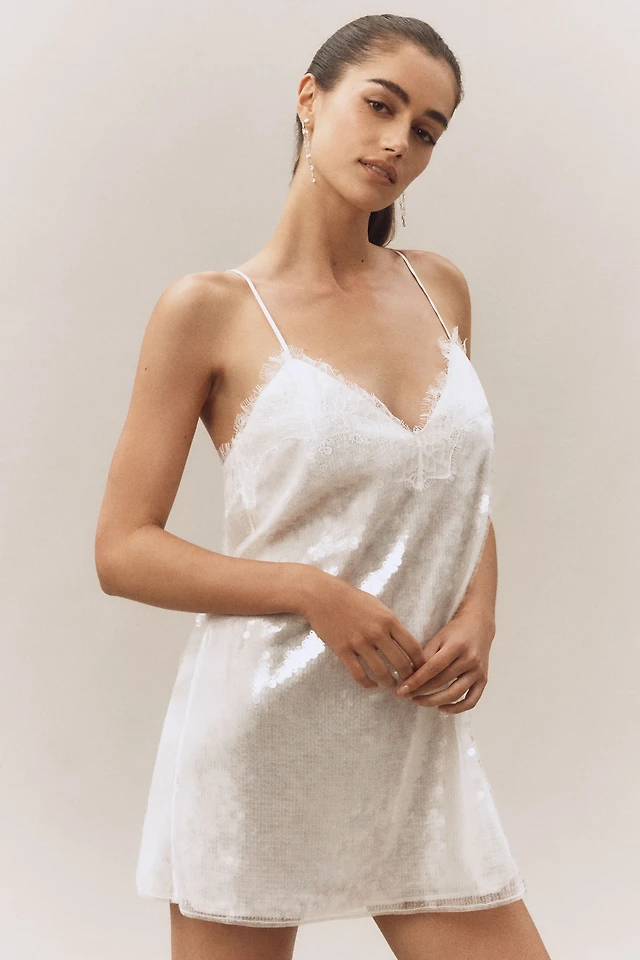 Retrofete Olive Sequin Lace V-Neck Mini Slip Dress