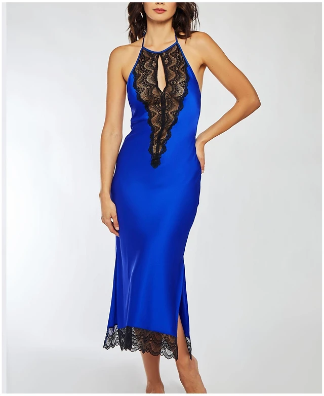 iCollection Women's Emma Satin Chemise Nightgown with Eyelash Lace