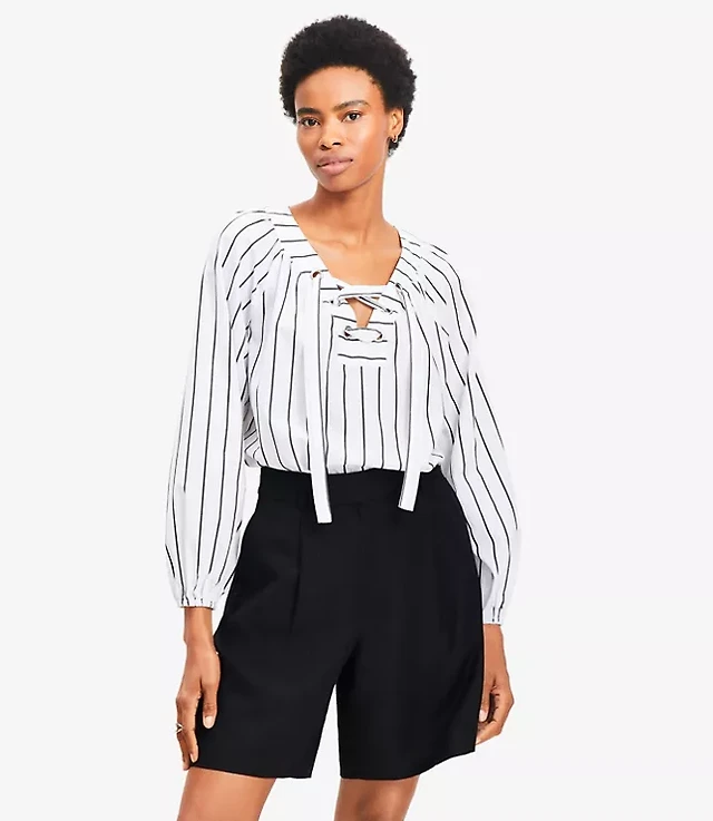 Petite Lace Shoulder Henley Blouse
