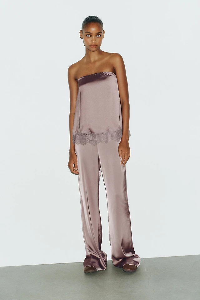 SATIN EFFECT LACE BUSTIER TOP