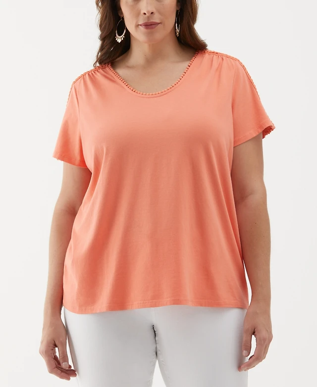 Lands' End Women's Short Sleeve Lightweight Jersey Gathered Shoulder T-Shirt