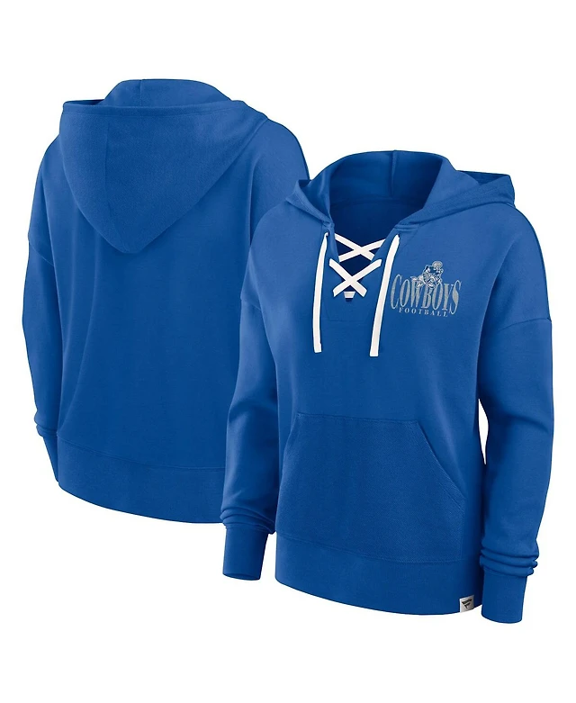 47 Brand Women's Blue New York Rangers Cropped Superior Lacer Pullover Hoodie
