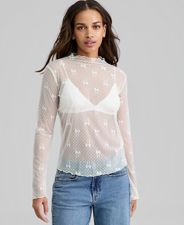 And Now This Women's Bow-Motif Lace Mock Neck Top, Macy's Exclusive