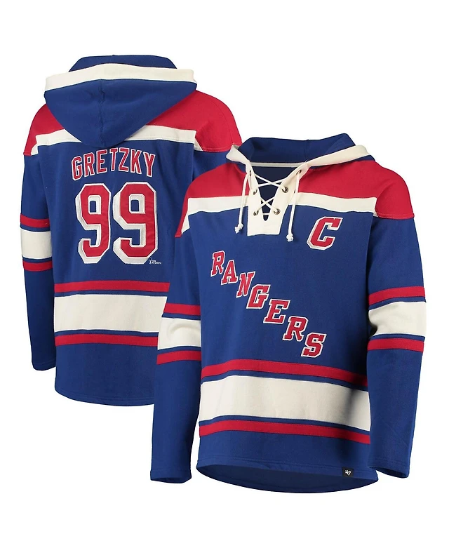 Men's Wayne Gretzky Blue New York Rangers Retired Player Name and Number Lacer Pullover Hoodie