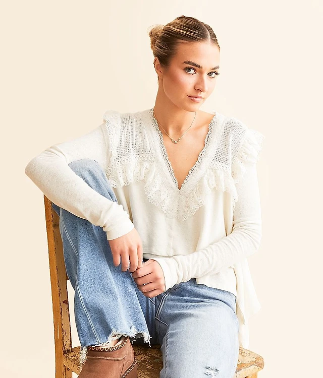 Edikted Izabella Lacey Satin Effect Ruffle Top