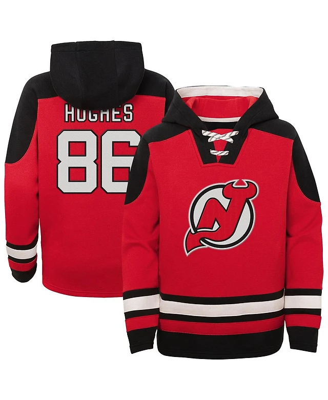 Outerstuff Big Boys and Girls Jack Hughes Red New Jersey Devils Must-Have V-Neck Name Number Pullover Hoodie
