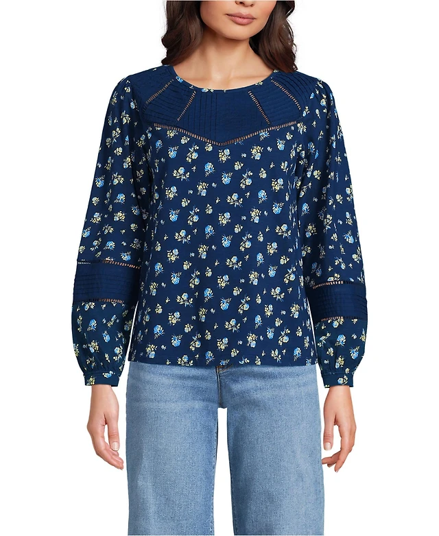 ellos Women's Keyhole Neck Blouse With Crochet Trim