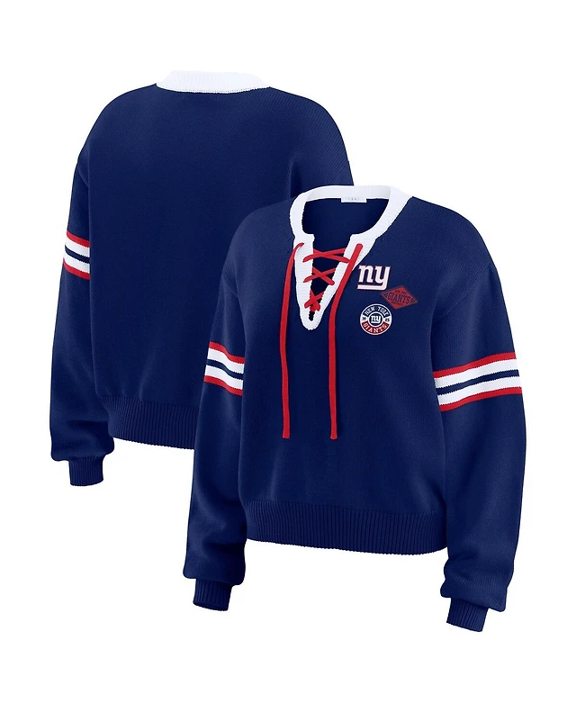 Women's Wear by Erin Andrews Blue New York Rangers Lace-Up Pullover Hoodie