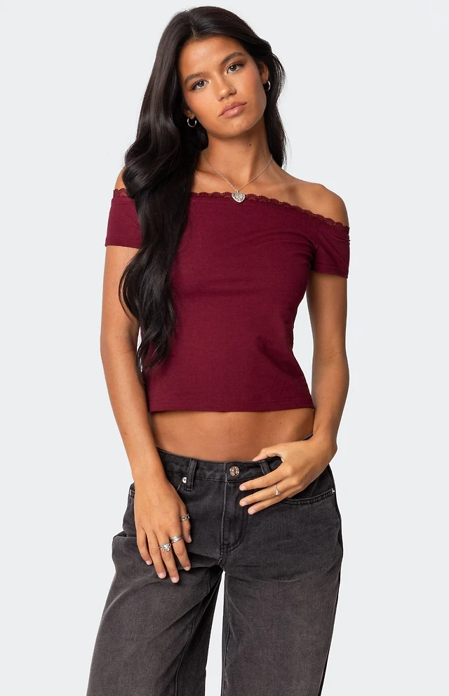 Edikted Laina Contrast Sheer Lace Babydoll Top
