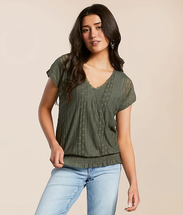 Self Esteem Juniors' Lace Cap-Sleeve Flyaway Top