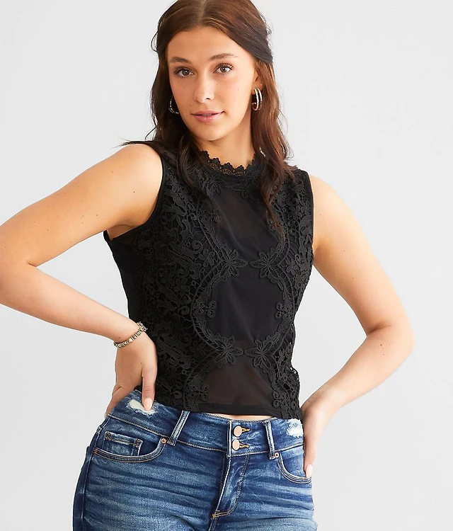Ny Collection Plus Sleeveless Mock Neck Lace Top