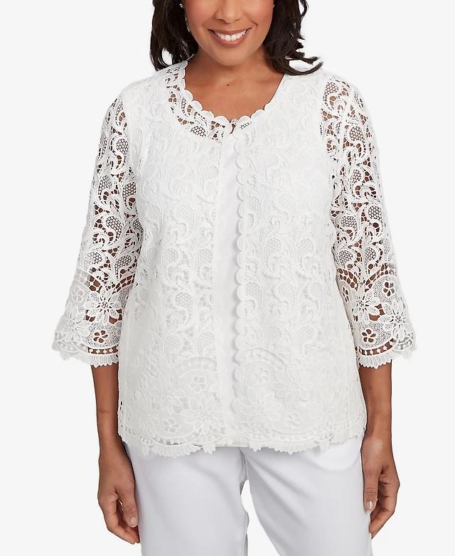 Alfred Dunner Petite Estate of Mind Embellished Lace Two in One Top