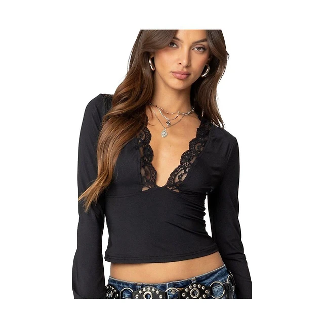 Revel Women's Layer Crochet Long Sleeve Shirt