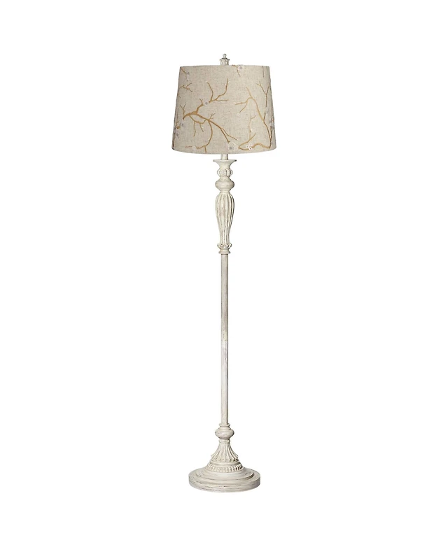 360 Lighting Vintage Country Cottage Floor Lamp 60" Tall Antique Embroidered Hourglass Print Drum Shade for Living Room Bedroom Office House