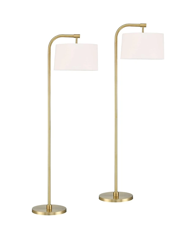 360 Lighting Modern Swing Arm Floor Lamp Adjustable Height 70" Tall Antique Brass Hardback Drum Shade for Living Room Reading Bedroom