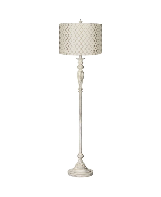 360 Lighting Possini Euro Design Vintage Shabby Chic Floor Lamp 60" Tall Antique Washed Platinum Drum Shade for Living Room Office