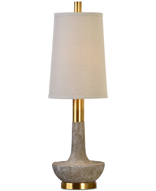 Hudson & Canal Corbett 29" Metal Natural Travertine Stone Table Lamp with Fabric Shade
