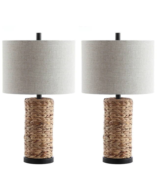 Jonathan Y Alaro 24.5" Farmhouse Coastal Water Hyacinth Basket Led Table Lamp, Dark Brown