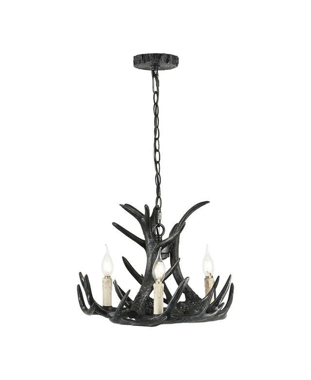 Jonathan Y Nelle 18" Adjustable Resin Antler 3-Light Dimmable Led Chandelier, Black
