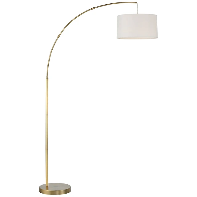 360 Lighting Modern Arc Floor Lamp with Usb Charging Port 72" Tall Brass White Linen Drum Shade for Living Room Reading House Home