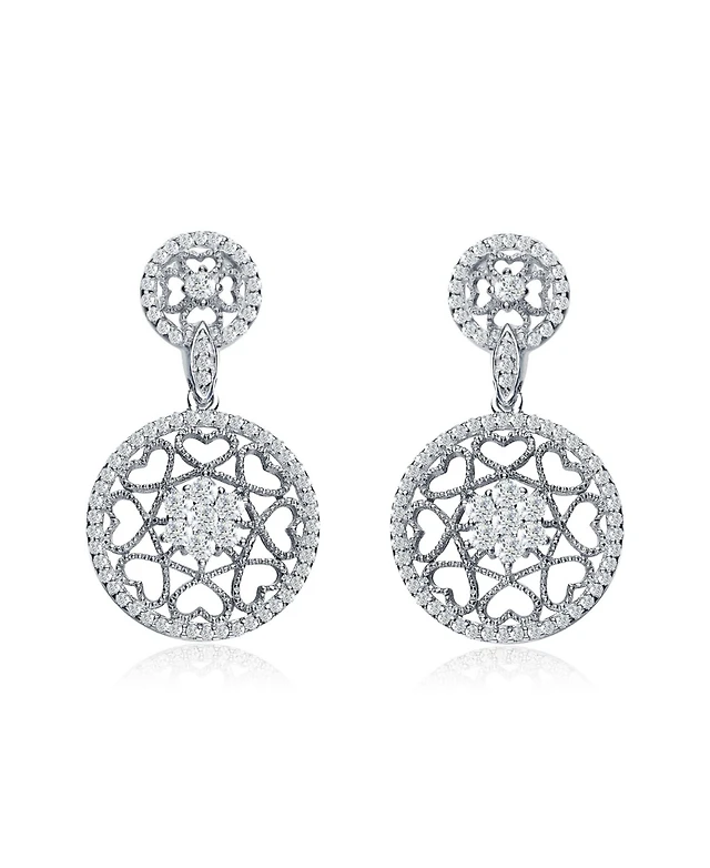 Gv Sterling Silver with White Gold Plated Clear Round Cubic Zirconia Linear Drop Earrings