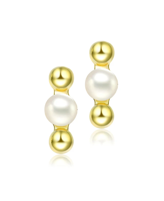 Beautiful Sterling Silver 14K Gold Plated 14-15MM Genuine Freshwater Pearl Drop Earrings