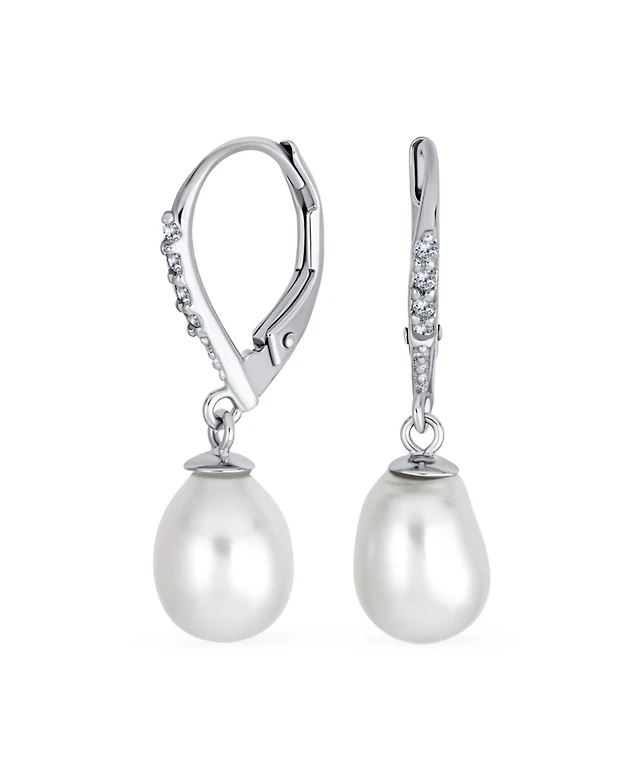 Bling Jewelry Classic Simple Yellow Gold Plated White Freshwater Cultured Pearl Pear Shape Teardrop Mini Hoop Huggie Drop Earrings