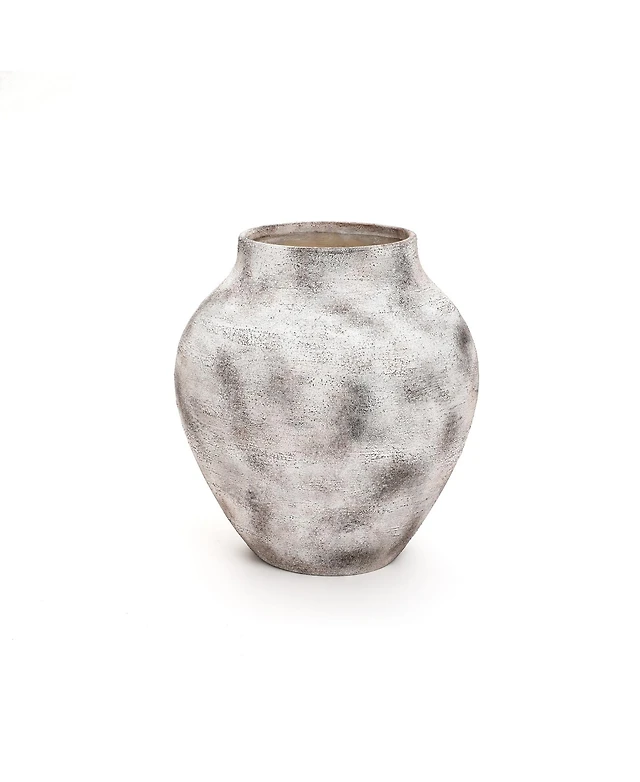 LuxenHome Old-World Brown with Gray 11-Inch Tall Round Terracotta Vase with Handles