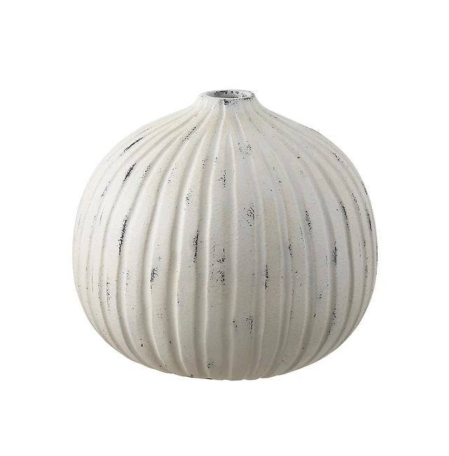 LuxenHome Beige Ribbed Round 15.2-Inch Tall MgO Vase