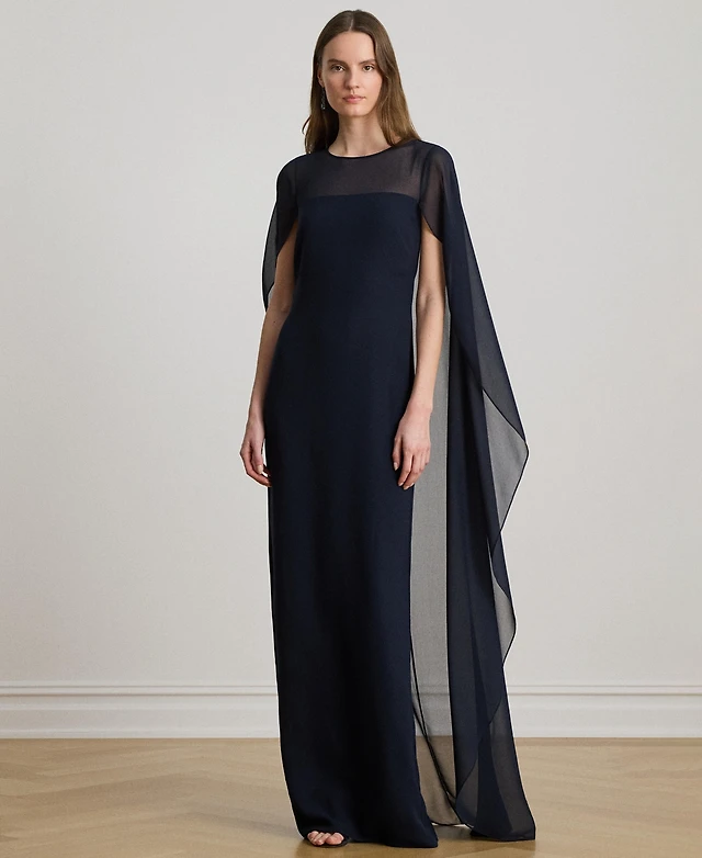Lauren Ralph Women's Polka-Dot Burn-Out Satin Cowlneck Gown