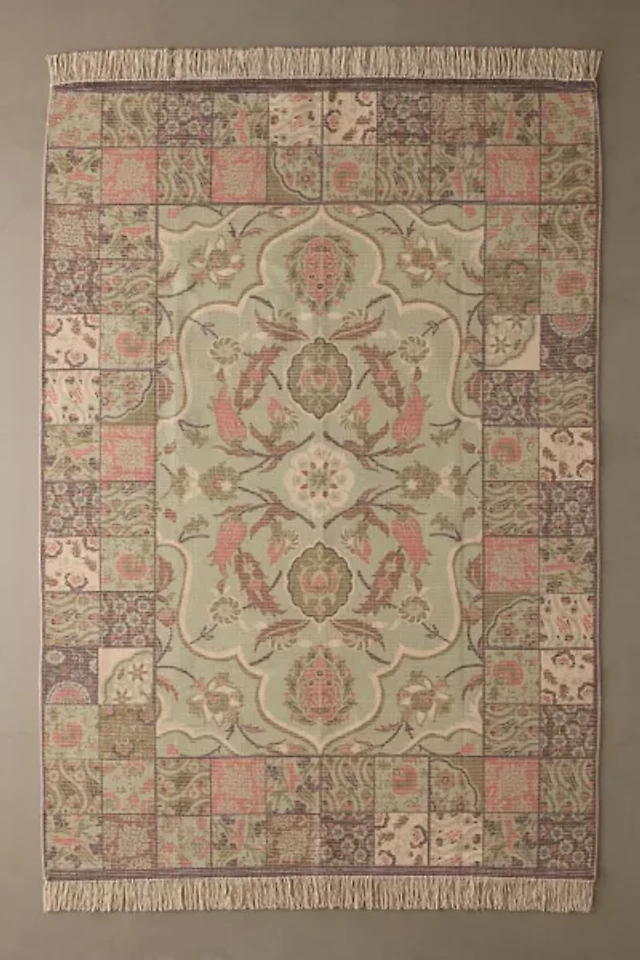 JUTE AND COTTON AREA RUG WITH FRINGING