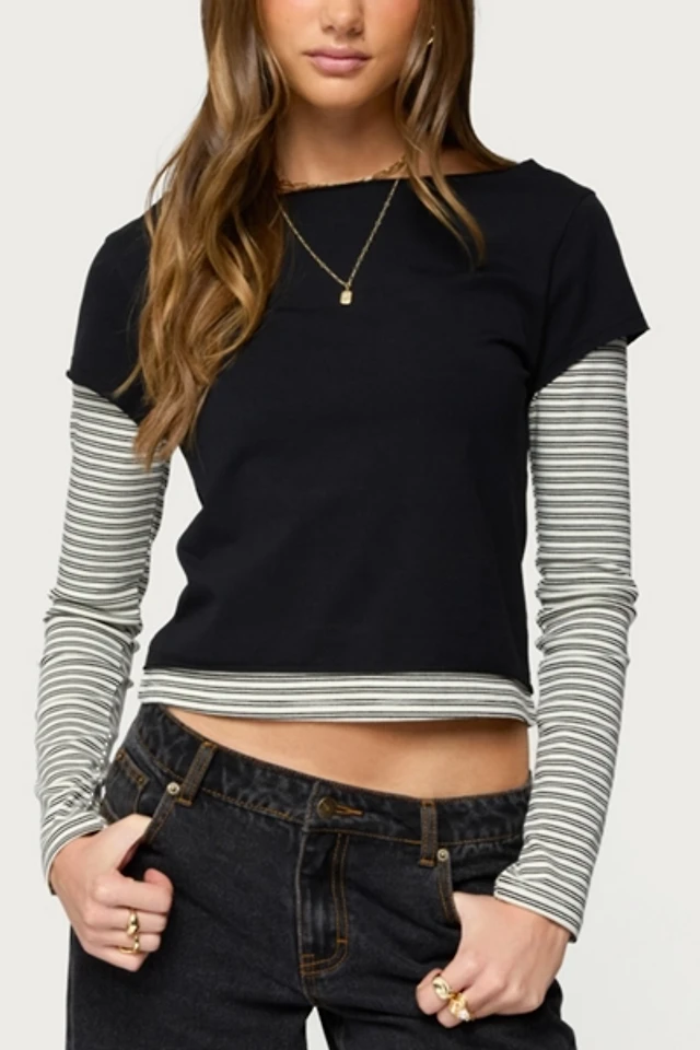 Edikted Layered Stripey Long Sleeve T Shirt