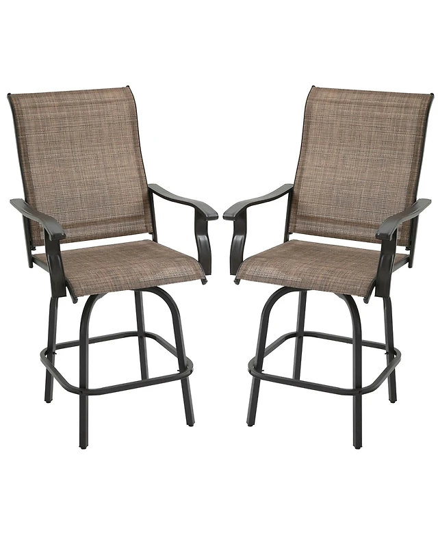 Outdoor Counter Stools Set of 2 with Footrest & Armrests Metal Frame for Backyard