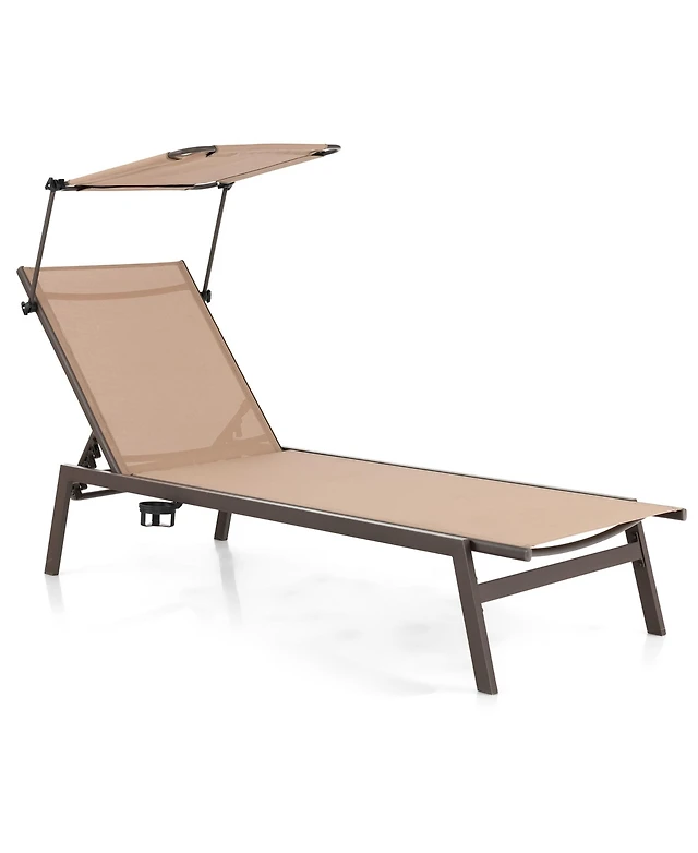Slickblue 2 Pieces Patio Folding Chaise Lounge Chair Set with Adjustable Back-Brown