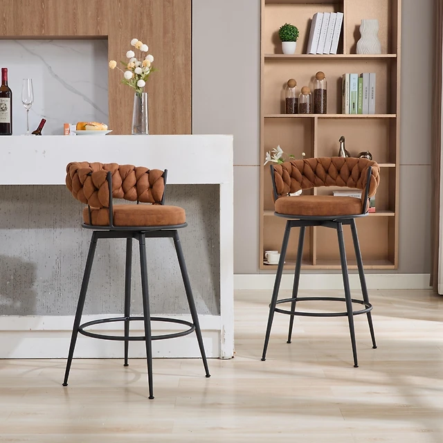 Gymax 24'' Modern Bar Stools Set of 2 w/ Hollowed High Backrest Waterproof Pu Leather