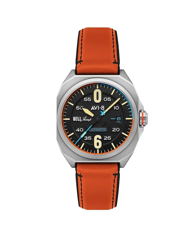Avi-8 Men's Bell X-1 Machbuster Automatic Orange Rubber and Leather Strap Watch, 41mm