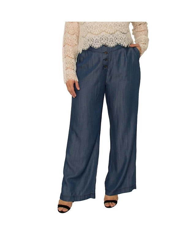 Dkny Jeans Womens High Rise Wide Leg Pants