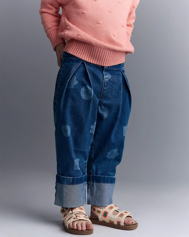 Toddler Girl Character Print Cuffed Pleat Pant in Denim - Blue