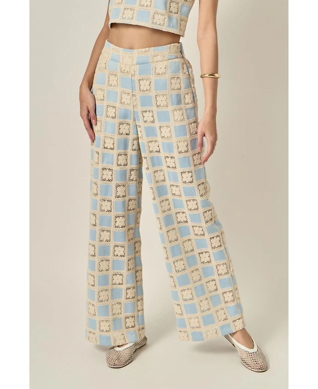 Gobi Cashmere Women's Wide-Leg Ajour Knit Pants