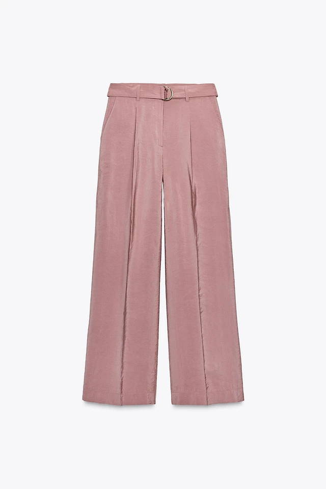 FLOWY WIDE LEG BELTED PANTS
